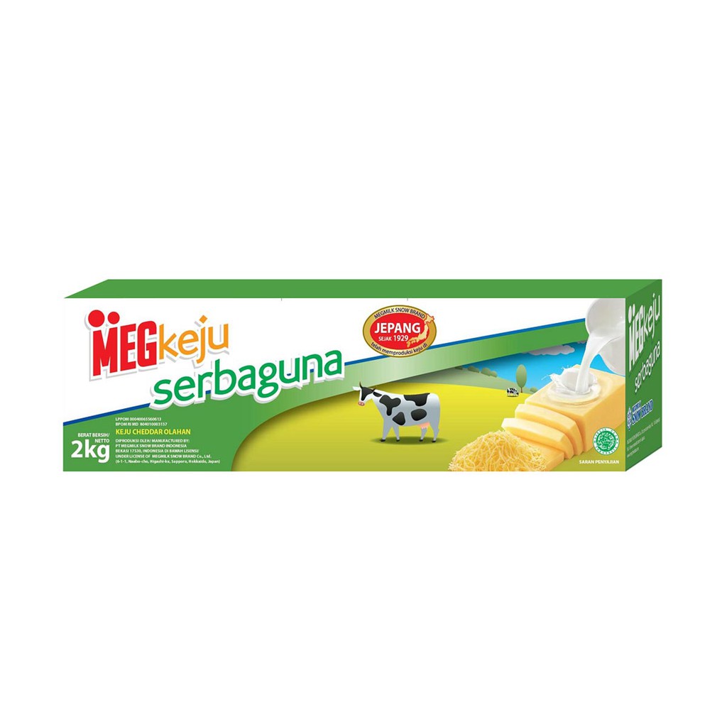 "Deskripsi Product :Meg Keju Serbaguna 2 Kg merupakan keju yang diproduksi secara higienis dengan teknologi jepang sehingga menghasilkan keju dengan kandungan gizi yang lengkap sekaligus rasa yang nikmat. Shelf Life : 12 BulanBPOM : MD 804010020