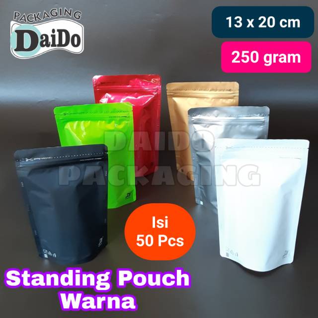 Agen Perlengkapan di Kabupaten Tangerang Standing Pouch Super Aluminium Foil 250 Gram 13x20 Cm Kemasan Kpack Isi 50 dari Daido_surabaya Kota Surabaya