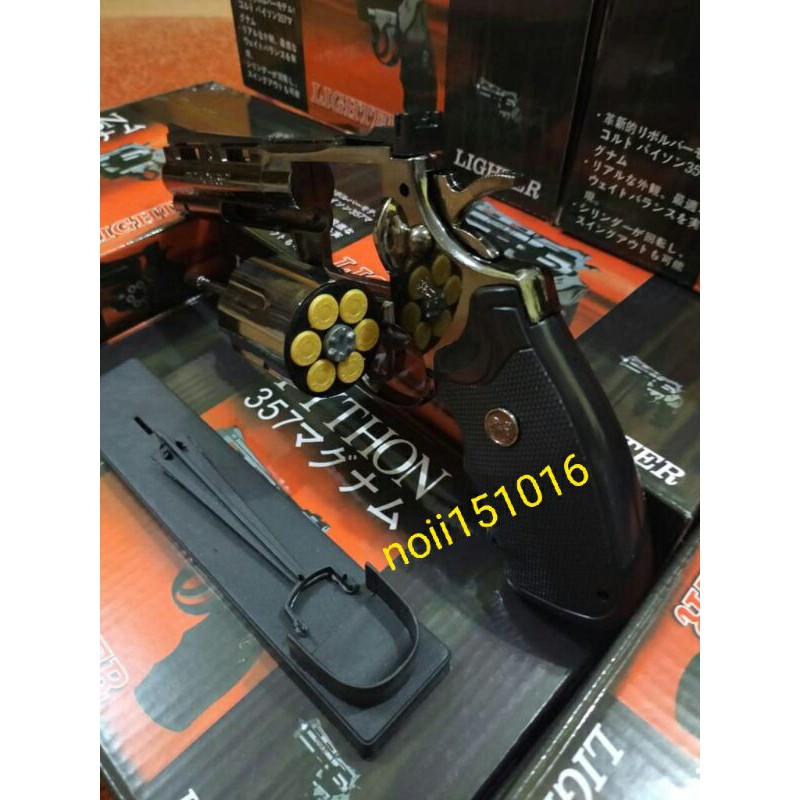 Korek api ini unik dengan bentuk seperti pistol Revolver Python. Warna metal (silver) tua.Bagian tengahnya juga bisa dibuka dan dipasangin peluru seperti aslinya (sudah tersedia 6 bh peluru plastik).Jenis api pada pistol ini adalah api jet yang diklaim lebih baik ketimbang api biasa pada umumnya, baik dari segi kualitas api & segi ketahanan api terhadap angin.Dalam paket ini sudah berikut tatakan pajangan, sehingga korek api ini dapat langsung menjadi pemanis dekorasi ruangan Anda.Cocok untuk koleksi ataupun hadiah.Dimensi: 24cm x 15cm x 2.7cm.Garansi Barang rusak hanya belanja di toko "Noii151016"Terima
