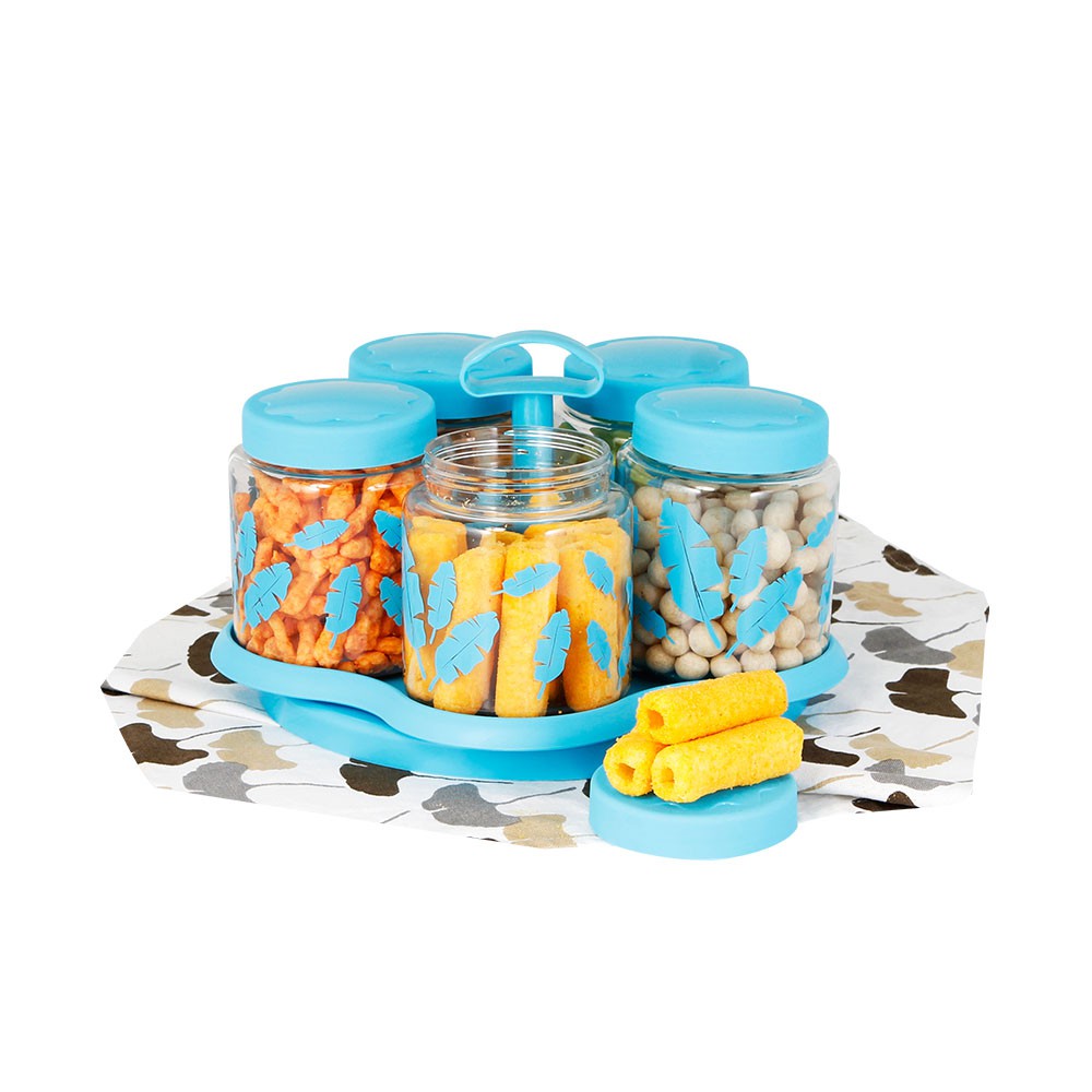 Nobanana Spin Canister Set GreenToples cantik dengan wadah yang dapat berputar!Dengan 5 toples cantik kapasitas 760 ml dalam setiap setnya plus tempat toples yang dapat diputar 360 derajat, untuk memudahkan Anda mengambil toples.Keunggulan produk ini:- Seal ketat udara, sehingga menjaga kerenyahan makanan lebih tahan lama.- Alas toples yang dapat berputar 360 derajat- 1 set terdiri dari: 5 Toples cantik kapasitas 760 ML + 1 alas pemutar- Material : Plastik