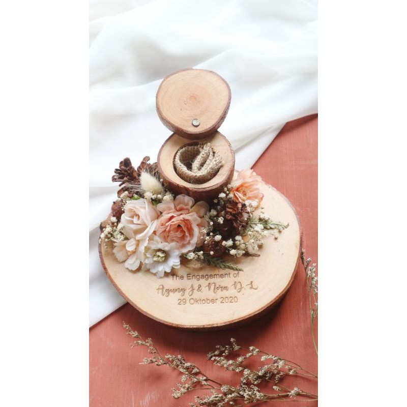 Tempat cincin Size alas 13-15cm, bentuk lingkaran kayu alami mengikuti bentuk batang pohon, tidak bisa persis antara 1 dengan lainnya.Untuk produk arsya pre order 1-3 hari tergantung antrian dan stock bahan. Bentuk tulisan sesuai samplegrafir dengan mesin.Bisa request warna bunga dan diberikan alternatif warna jika warna tersebut kosong.Cara request nama:Silahkan klik di kolom "Pesan" pada saat check out yaa :) mohon tidak ditulis chat untuk mengurangi kesalahan.Kami hanya akan menuliskan berdasarakan tulisan yang kakak ketik dikolom pesan atau notes.contoh penulisan nama:The Engagement of Rachel & Aryo1 Januari 2020Kami proses sesuai tulisan tersebut :)Catatan: Untuk barang kerajinan tangan ( bunga, batu, biji-bijian dan asesoris lainnya) tidak sama bisa sama persis kami carikan yg paling mendekati atau silahkan cek di review produk kami. SEBELUM MEMBELI WAJIB BACA:)1. Jadilah pembeli yang bijak. Budayakan membaca sebelum membeli.2. Kesalahan penulisan typo dari kami akan kemi ganti.3. Berat barang yang tertera adalah berat volumetrik. apa itu berat volumetrik silahkan cek di google.4. Barang yang kami jual yang di dapat sesuai dengan foto produk.5. Akibat pencahayaan kamera sewaktu foto ada kemungkinan warna produk tidak 100% sama dengan warna foto.6. Silahkan pilih variasi barang yang akan dibeli pada saat order. Perubahan via chat TIDAK BERLAKU, Kecuali sudah ada kesepakatan kedua belah pihak.7. Barang kami dipacking dengan sangat aman khusus untuk mahar kami packing kayu. 8. Jika terjadi masalah ( barang tidak sampai/barang yang diterima rusak atau tidak lengkap) silahkan ajukan complain seacara baik baik. khusus barang rusak atau pecah akan kami ganti disertai bukti vidio unboxing produk. tanpa bukti vidio unboxing barang komplain tidak kami terima.Membeli berarti setuju atas atas ketentuan diatas. Trimakasih Dikirim dari Kotagede Yogyakarta ☺#ringbearer #ringbox #ringboxrustic #tempatcincin #mahar #kotakcincinrustic #kotakcincinmurah #kotakperhiasan #kotakperhiasanrustic #tempatmahar #maharmurah#kotakcincin #kotakcincinmurah #kotakcincinunik #kotakcincinkawin #kotakcincinkayu #ringboxwedding #ringboxrustic #ringboxjakarta #ringboxjogja #ringboxm