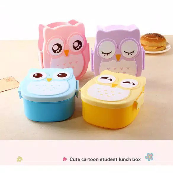 Name: Jhdp20 Kotak Makan Bekal Anak Karakter Bentuk Owl Lucu Lunch Box Luci Model Burung Hantu 2 Grid