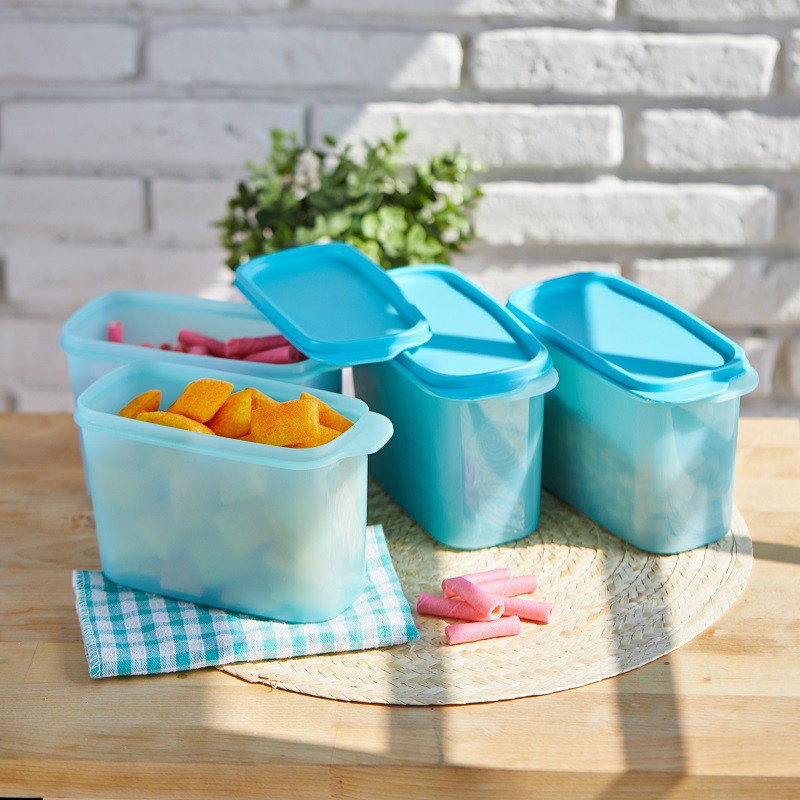 CPM Tamika Jr Storage Blue Set of 4pcsDengan volume 1.1 L dengan ukuran 19 x 8.5 x 12 cmBahan plastik PP5 polypropilene , food grade aman untuk makananTerdapat tempat intip untuk melihat dalam isi makananDengan motif yang menarik dan variant warna yang banyak, buruan dikoleksi ya ka