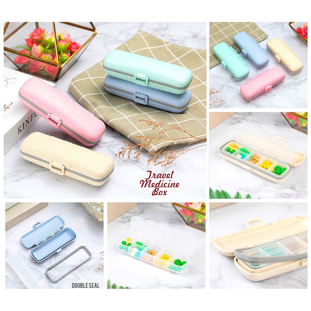 Travel medicine box adalah kotak obat atau supplemen dengan ukuran mungil, praktis dibawa berpergian. Bisa dibawa saat traveling, saat kerja atau saat sekolah atau kuliahModel ini berbentuk box in box, terdiri dari 1 kotak besar yang bagian dalamnya terdapat 1 kotak transparan yang terbagi menjadi 7 sekat kecil. Dengan adanya sekat memudahkan memisahkan jenis obat atau supplemenBagian dalam kotak obat terdapat 3 sekat besar dan 4 sekat kecil, masing-masing sekat ada tutupnya.Sekeliling tutup kotak bagian luar terdapat lapisan karet, fungsinya sebagai lapisan kedap udara. Dengan 2 lapis tutup, obat atau supplemen yang tersimpan di dalam kotak lebih awet dan higienis tentunya.Kotak obat bagian dalam berbentuk transparan bisa dilepas dari kotak bagian luar, memudahkan saat dicuci. Bagian depan kotak terdapat klip pengunciDengan bentuknya yang mungil, mudah disimpan di dalam tas atau saku celanaMaterial : food grade plasticSize : 13.8 x 4.5 x