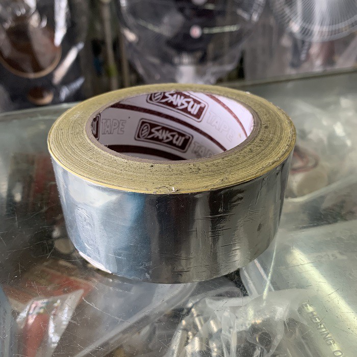 Alumunium tape•Brand : SANSUI•Panjang : 35 M•Size : 48mm / 2 inchAluminium Foil Tape sangat cocok untuk segala pekerjaan :-perlindungan terhadap suhu Panas-melekat di permukaan metal-Biasa digunakan untuk tambal