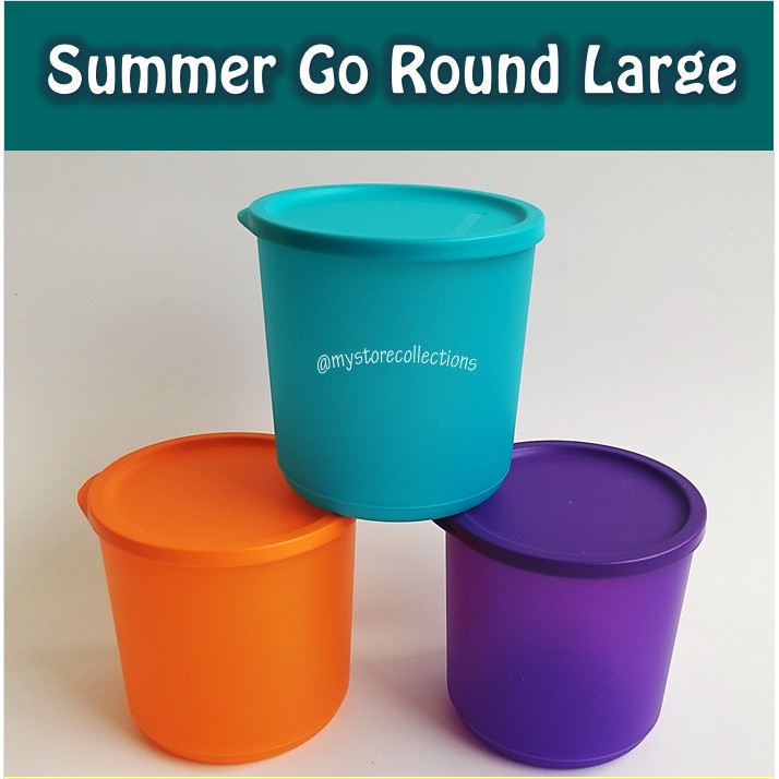 Summer Go Round Large (1Pcs) Ukuran:@ 1.1 L / d: 12.5 cm, t: 12.6 cmKegunaan : Seal/tutupnya ketat udara sehingga apapun camilan favorit kamu akan tetap renyah dan lezat saat disimpan. Membawa camilan basah atau cair juga tetap oke, karena seal/tutupnya juga ketat cairan. Classic Round Seal yang akan memudahkan membuka. Stacking, tidak mudah jatuh saat ditumpuk ke atas sehingga lebih hemat tempat penyimpanan. Modular, sehingga lebih rapi saat disusun. Bagian bawah basenya melengkung jadi lebih mudah saat dibersihkan.NB: MOHON TANYAKAN KETERSEDIAAN BARANG TERLEBIH D