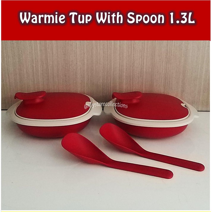 1.3L Warmie Tup with Spoon (1 Pcs)Ukuran:1.3 L / d. 24 ; t. 6.7 cm (without cover) t. 10.5 cm (with cover) Momen istimewa kumpul keluarga di hari yang spesial harus dipersiapkan dengan baik agar momen tersebut tak terlupakan. Untuk itu, Anda harus memilih wadah yang tepat agar hidangan yang disajikan akan tetap hangat lebih lama saat disantap. Tupperware menghadirkan piranti saji yang lengkap, yaitu 1.3L Warmie Tup with Spoon yang cantik dan akan menjaga makanan hangat lebih lama sehangat kumpul bersama keluarga.Fitur 1.3L Warmie Tup with Spoon :1.Dengan fitur Double Walled yang dapat menjaga suhu makanan tetap hangat 90 menit lebih lama.2.Dilengkapi dengan cover dan dapat ditutup dalam 2 posisi (dengan sendok di dalam atau tanpa sendok di dalam).3.Memiliki 2 fungsi, yaitu reheat (menghangatkan dalam microwave) dan serving (menyajikan hidangan di meja makan).4.Cover dapat digantung pada bagian samping Bowl.Keistimewaan:•Ukuran yang beragam, sehingga lengkap untuk menyajikan berbagai makanan.•Dilengkapi dengan sendok yang memudahkan Anda untuk mengambil makanan. •Semua bagian Warmie Tup dapat dibuka, sehingga mudah dibersihkan.•Hemat tempat saat disimpan.•Tampilan desain dan warna yang modern dan cerah sesuai dengan gaya interior rumah modern masa kini.•Terbuat dari bahan khusus sehingga produk ini dapat untuk menghangatkan makanan di microwave.•Material bahan bagian luar tidak licin, sehingga tidak mudah meleset saat dipegang.NB: MOHON TANYAKAN KETERSEDIAAN BARANG TERLEBIH DA