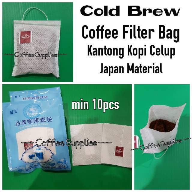 COLD BREW COFFEE FILTER BAGPREMIUM FOOD GRADE PAPER - JAPAN MATERIALBisa untuk sesuh panas dan dinginHarga Tercantum untuk 1pcsMinimal pembelian 10pcsDimensi: 7.5cm x 9cmPanjang Tali: +/- 15cmKapasitas : 15g-20g- kantong bisa untuk seduh dingin dan panas- tidak sobek di rendam air dalam jangka waktu panjang- paper tahan panas sampai 150 degrees Celcius- tidak berbau , non toxic, tidak mengandung zat berba