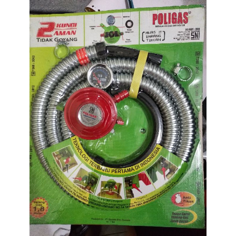 Selang gas anti tikus dan anti bocor. Lengkap dgn 2pengunci sisi kanan dan kiri, menjaga tabung dan regulator tdk goyang/goncang saat digun