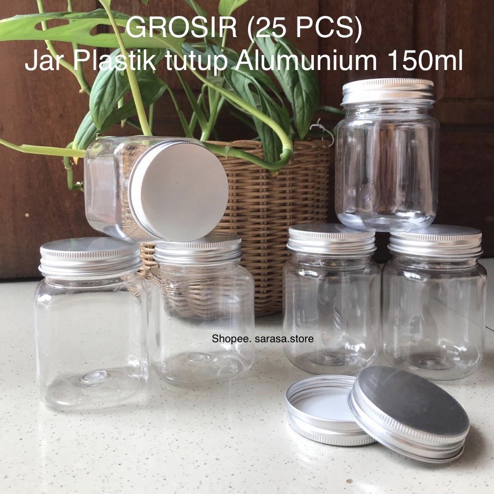 Suplier Perlengkapan di Kabupaten Brebes Grosir (25pcs) Jar Toples Plastik Tutup Alumunium Modern Wadah 150 Ml Makanan Sambel Packaging Murah dari Sarasa.store Kota Jakarta Barat