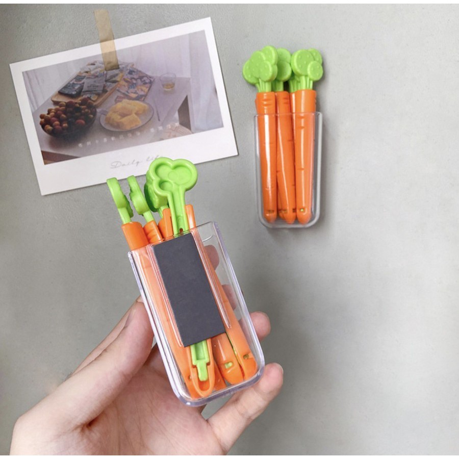 1. Bahan berkualitas tinggi: Terbuat dari bahan PP, aman, kuat, dan tidak berbau aneh, tidak membahayakan anak-anak dan Anda.2. klip penyegel kantong ini sangat mudah digunakan, ringan, dan mudah dibawa. menyegel makanan ringan ketika dibawa pada perjalanan tanpa khawatir makanan tersebar di mana-mana.3. dapat menyimpan semua jenis makanan segar untuk jangka waktu yang lebih lama dan tetap di dapur, kulkas atau freezer.4. Cocok untuk kantong plastik berbagai ukuran: Cocok untuk plastik makanan ringan dan makanan beku, plastik makanan panggang, plastik makanan kering, plastik makanan hewan.Hindari makanan atau susu bubuk dari kelembaban. Ini dapat membantu Anda menyimpan makanan tanpa khawatir tentang selera yang berbeda.5. Mudah digunakan: Snap-on design, elastisitas yang baik, sehingga mudah untuk membuka dan menutup. Tidak perlu untuk menggulung tas buka hanya hook tas buka dan kunci gesper.bentuk wortelwarna orangeukuran klip 7.2 x 11.5 x 8.7dikemas dalam wadah yg memiliki magnet sehingga bisa ditempel dipintu lemasi es1 set isi