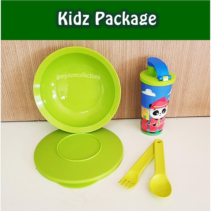 Kidz Package Set (Bekal Hijau Lime)Terdiri dari :1 Pcs Fun Tumbler - Panda 260ml // d : 6.7 cm / t : 15.4 cm1 Pcs Expression Small Dish With Cover Ukuran : 400 ml // d : 17.4 cm, t : 4.5 cm1 Pasang Cutlery // Sendok GarpuNB : MOHON TANYAKAN KETERSEDIAAN BARANG TERLEBIH D