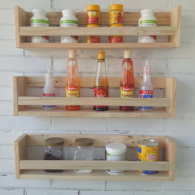Rak kayu untuk bumbu dapur atau rak make upBahan kayu jati belanda Ukuran 50*13*9cmharga per pcsPemasangan mudah tinggal paku dilubang yg telah dised